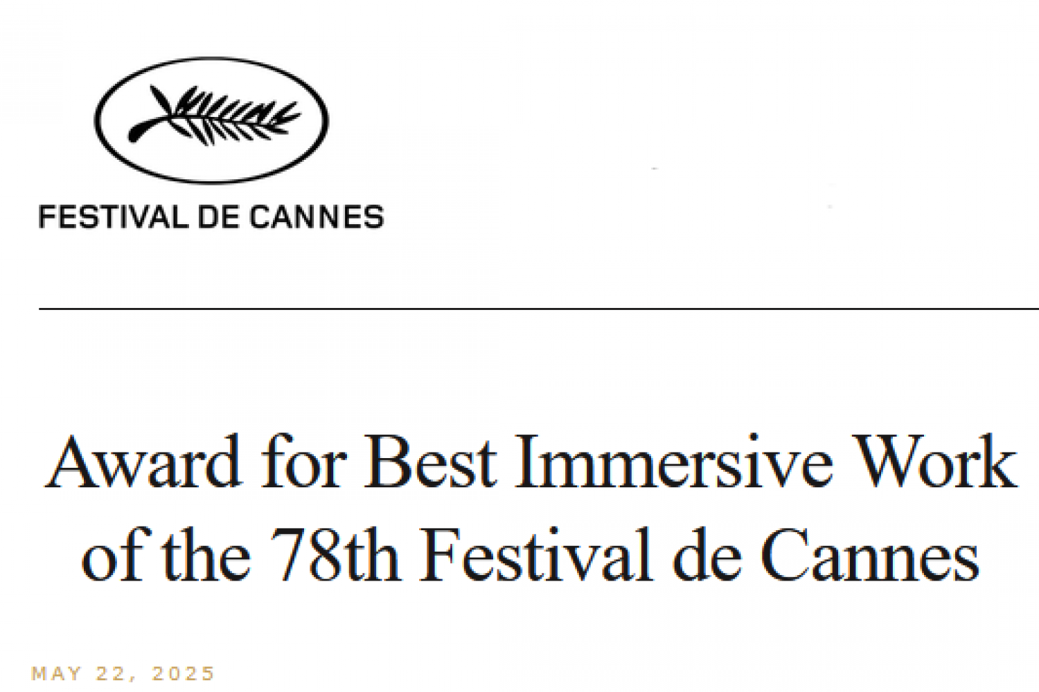 Dive into the future of storytelling at the prestigious Carlton Hotel Cannes from 14 to 23 May 2025. Learn more about the Compétition Immersive: