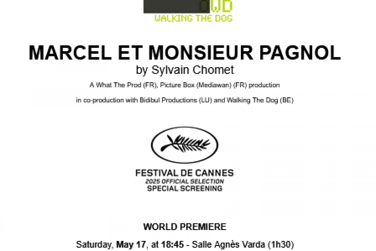 A MAGNIFICENT LIFE also known in French as „Marcel et Monsieur Pagnol,“ is a co-production between FRANCE, LUXEMBOURG and BELGIUM. Alongside the main producers are WHAT THE PROD (FR, producers Ashargin POIRÉ, Valérie PUECH) and PICTURE BOX / MEDIAWAN (FR, producer Aton SOUMACHE) in coproduction with BIDIBUL PRODUCTIONS (LU, producer Lilian ECHE) and WALKING THE DOG (BE, producers Anton ROEBBEN, Eric GOOSSENS).