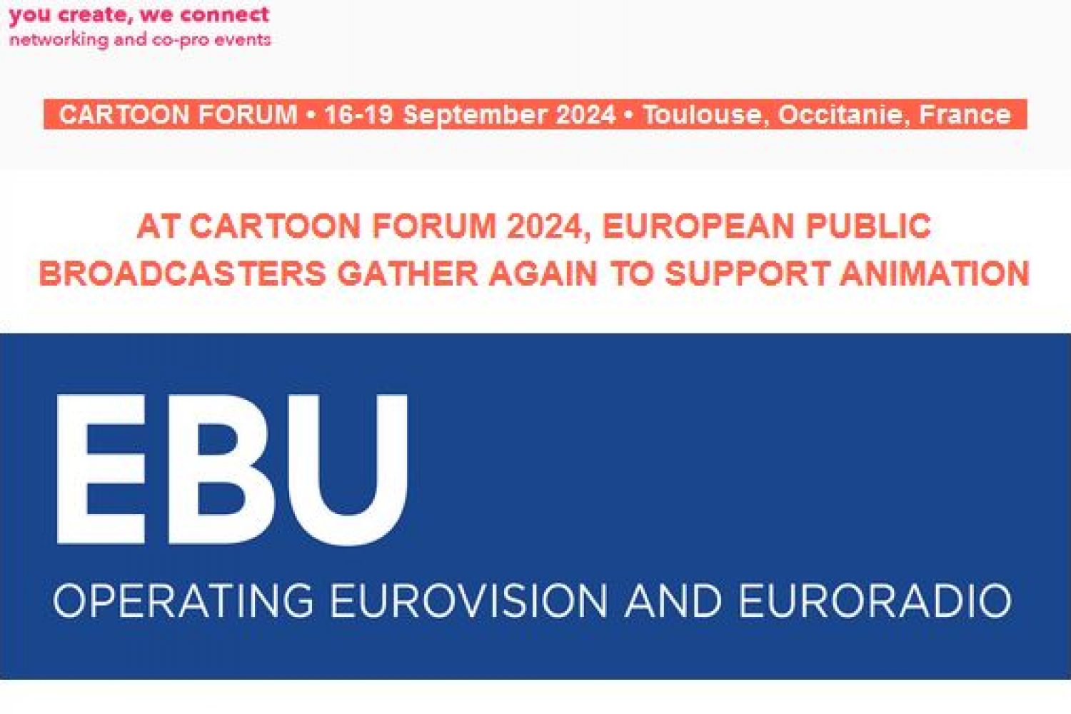 Following the launch of a co-development initiative in 2023, the European Broadcasting Union (EBU), France Télévisions, and CARTOON are joining forces again to work on a collaboration model for animation, focused on the collective financing of a project to be selected by EBU Members during Cartoon Forum.