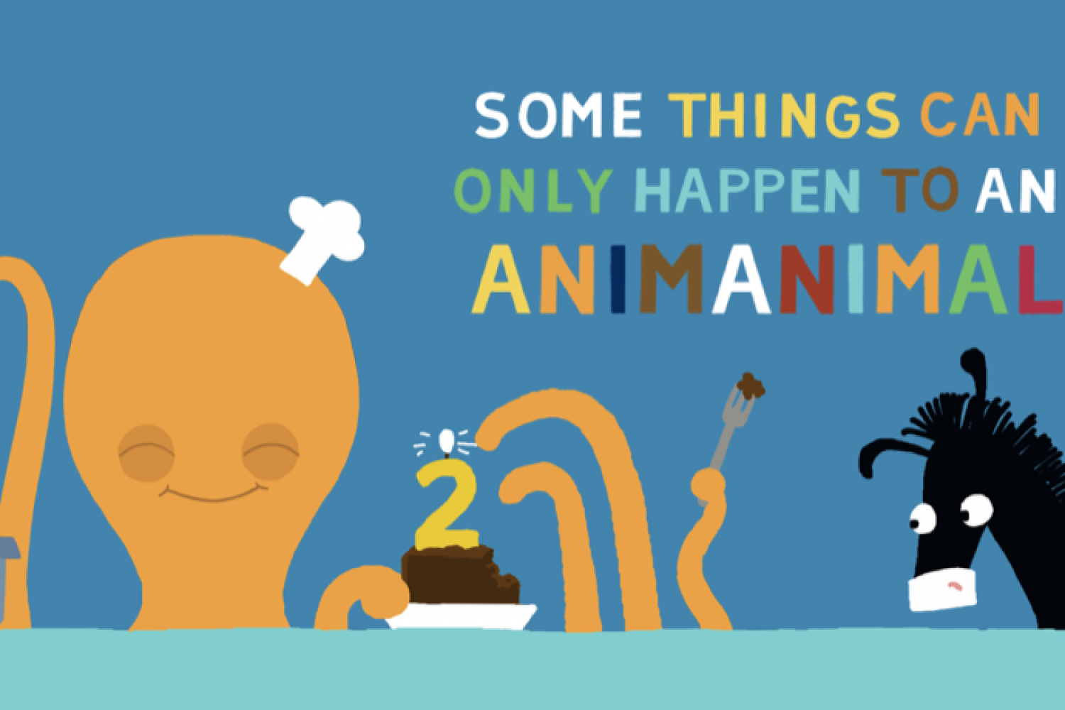 Die ANIMANIMALS sind Tiere mit kleinen Marotten. Jedes von ihnen erlebt ein absurdes Abenteuer, das nur ihm passieren kann. Zum Beispiel geraten dem Zebra die Streifen durcheinander. Die Krake möchte einen Pfirsichkuchen backen, aber einer ihrer Arme hat andere Pläne.