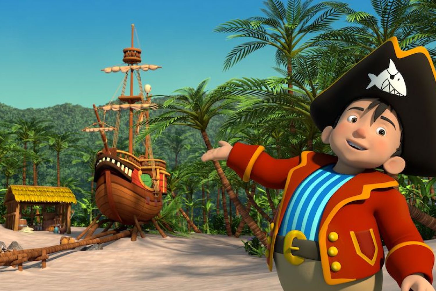 Er ist der Schrecken der sieben Weltmeere – denkt er zumindest! Doch von den anderen Seefahrern wird Käpt’n Sharky alles andere als ernst genommen und gerne mal als halbe Portion verspottet. Vor allem der Alte Bill und seine Crew haben es auf den kleinen, rundlichen Piraten abgesehen und liefern sich so manches Duell mit ihm. Als Sharky mal wieder auf der Flucht vor seinen Widersachern ist, landen durch Zufall zwei blinde Passagiere auf seinem Boot: Während der zehnjährige Michi Schutz sucht, weil er dank Sharky versehentlich für einen Straßendieb gehalten wird, versteckt sich Admiralstochter Bonnie an Bord, um nicht aufs Internat zu müssen. Der kleine Pirat ist gar nicht begeistert von den ungebetenen Gästen, schließlich hat er schon eine Crew – den pflichtbewussten Matrosen Ratte, den frechen Affen Fips und den Papagei Coco. Doch für die nächste Mission fehlt Sharky noch ein Kompass – und ausgerechnet den hat Bonnie im Gepäck! Nach anfänglichen Schwierigkeiten rauft sich die bunte Truppe zusammen und begibt sich gemeinsam auf eine abenteuerliche Reise, auf der sie dem Alten Bill eine wichtige Lektion erteilen: Unterschätze niemals die Kleinen!