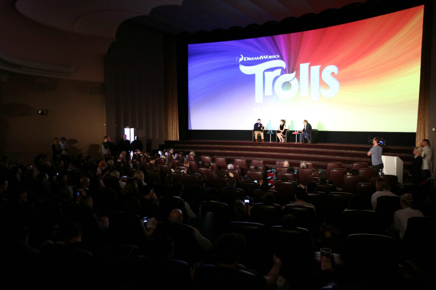 Bevor es in den Kinosaal ging, wurden uns Getränke und kleine Snacks angeboten. Bei der Gelegenheit konnte man sich gut mit anderen Indachsen und weiteren Leuten aus der Branche austauschen. Uns wurden drei Ausschnitte des Filmes gezeigt, die einen guten Einblick in die Welt und die Musik der Trolls gaben. Zwischen den Sequenzen hat Jeffrey Katzenberg immer einige Worte dazu gesagt. Anschließend kamen Justin Timberlake und Anna Kendrick auf die Bühne, um die Fragen der Zuschauer zu beantworten. Ich empfand, dass die ganze Zeit eine gute und humorvolle Stimmung im Saal war, sowohl beim Vortrag als auch beim Q&A. Ich freue mich schon auf den Kinostart von TROLLS!