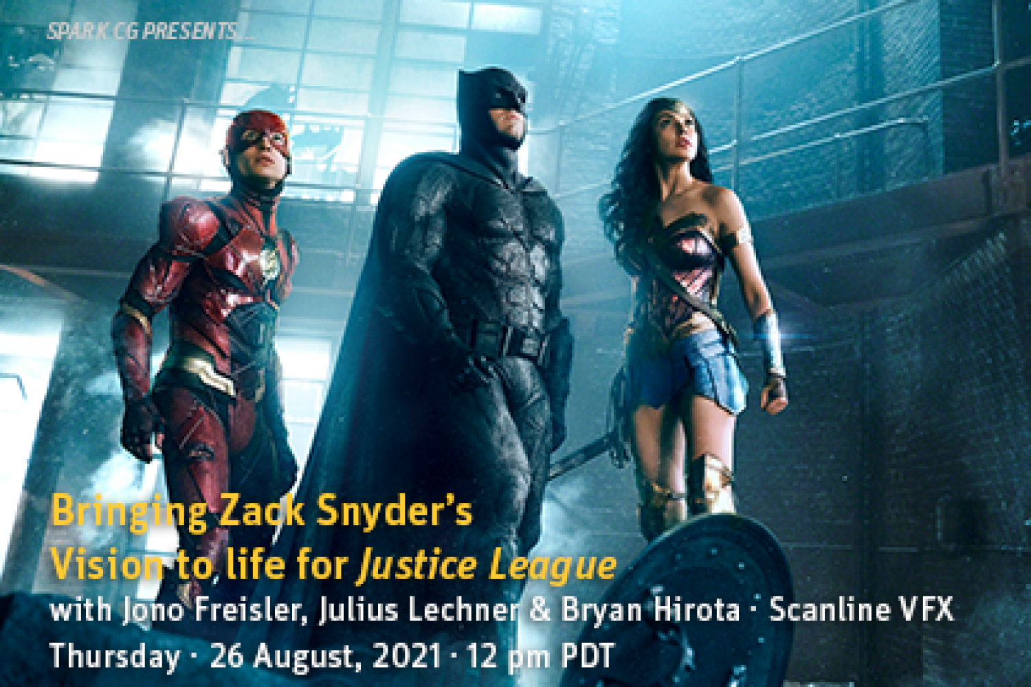 On Thursday, 26 August at 12 pm PDT, join VFX Supervisor Bryan Hirota, VFX Supervisor Julius Lechner, and FX Supervisor Jono Freisler for „Bringing Zack Snyder’s Vision to Life for Justice League.“
