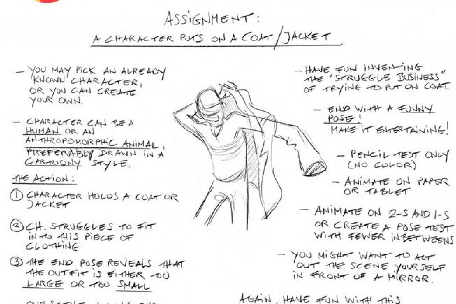 Renowned champion of animation, art and the surrounding creative industries, CTN (Creative Talent Network), proudly announces new details and theme for the second annual Andreas Deja Scholarship, a pioneering initiative dedicated  to fostering the rising stars in 2D animation. The 2024 assignment has been announced as ‘The Perfect Fit?,’ created by celebrated animator Andreas Deja for whom the scholarship was named. It challenges aspiring animators to create a pencil animation of a character struggling to fit into a coat/jacket, to reveal that the item is either too large or too small for them, or other to demonstrate their animation skills.